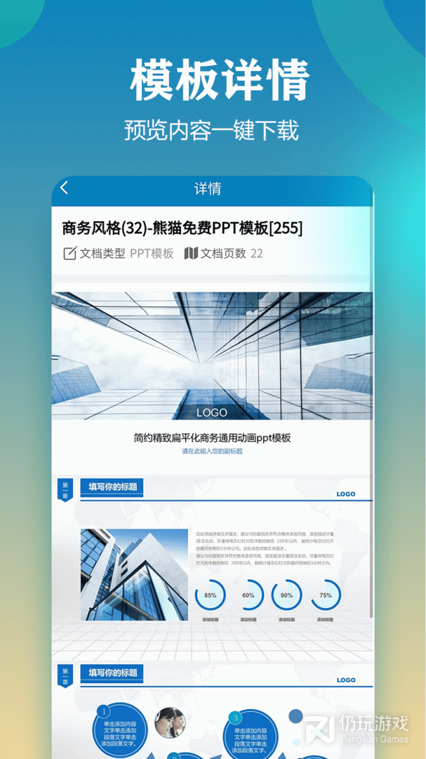 3、ppt模板是一款非常好用的手机在线ppt模板工具。海量的模板全部都是免费使用的。还有超多PPT教学,让你轻松学会制作PPT,从此无忧