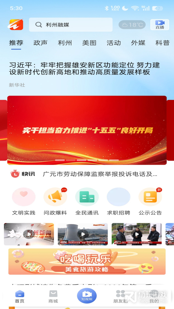 4、利州融媒是一款融媒体app,在这里你可以看到当地最全最新的新闻资讯,不需要出门就可以了解当地的热点新闻,在这里你还可以在线看电视,超级多的卫视频道和本地频道,你还可以在线办理政务,为居民办事提供了一个非常便利的渠道