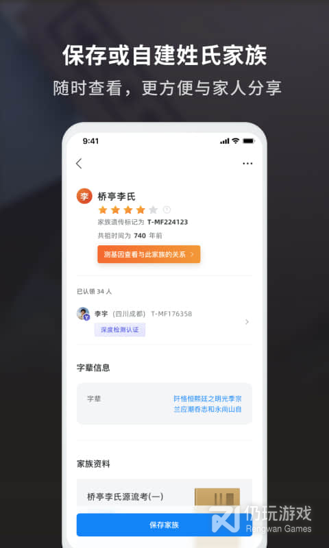 2、魔方祖源是由成都二十三魔方生物科技有限公司推出的手机家族库记录查看软件,可以发现和记录你的家族故事,支持家族树,匹配家族,历史信息等,需要的可以下载魔方祖源使用