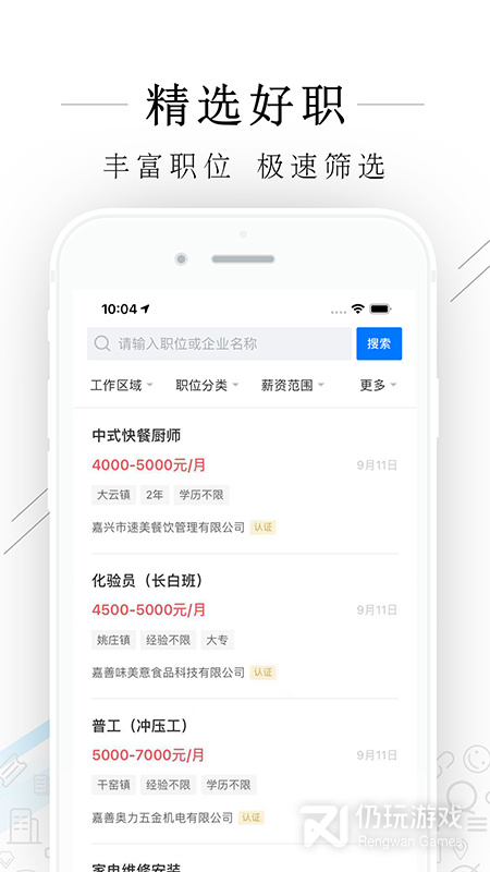 5、嘉善人力网一款当地的优质招聘软件,用户可以通过软件快速的找到工作,不同的工种实时搜索一目了然,招工作将会非常的方便,你还在等什么,有需要的话就快来下载使用吧