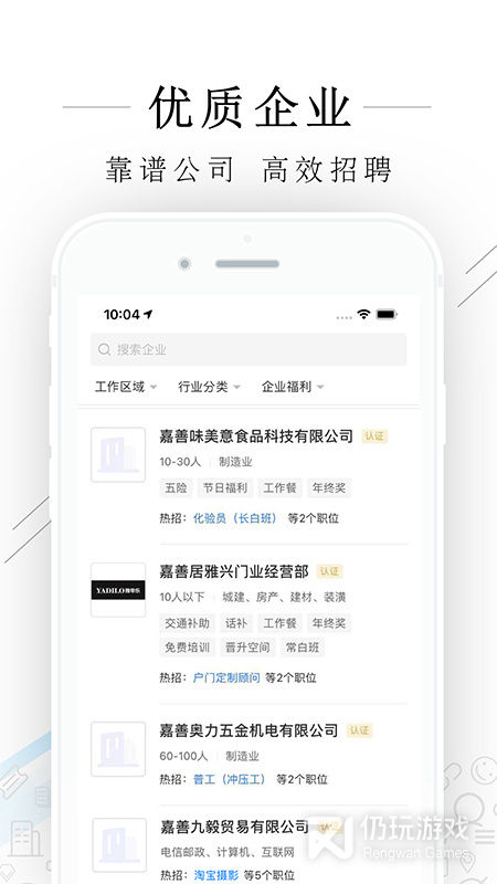 1、嘉善人力网是一款找工作、招人才一体化平台,在这里可以搜索职位和企业信息,所有的求职招聘信息都是经过审核的,帮助企业轻松招人才,人才快速就业,拥有急聘专区,保障双方利益,来即可使用,不要错过哦