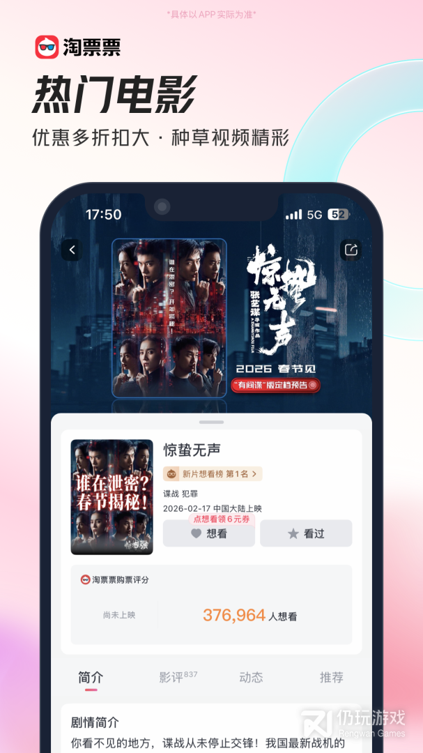 1、《惊蛰无声》、《镖人:风起大漠》正在热映,大额优惠券等你来领。