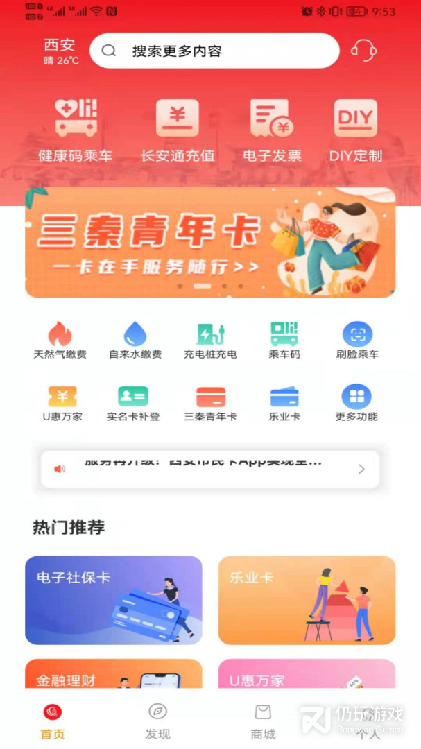 3、伴随着智能化付款的普及化,许多 群众在乘座公共性代步工具时,在所难免碰到交通卡余额不足,而没带零钱的难堪状况。尤其是疫情防控期内,不仅扫身心健康码又要扫乘车码,危害了行驶高效率。长安通智能化系统升級后将为客户出示方便快捷、无感觉的公交车交通出行付款新服务项目。西安市民卡App中载入了实体线卡在线充值、乘车码健康码二码结合、手机上NFC办卡、新能源充电、发票等城市公共交通交通出行有关作用
