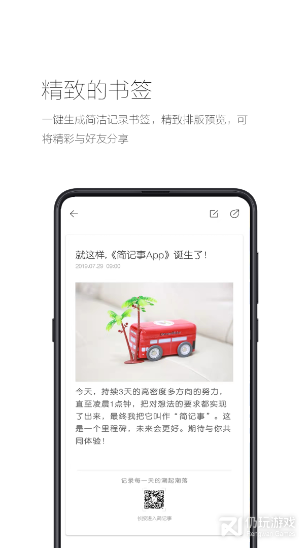 3、精致的书签:一键生成图片书签,精致的排版预览,可将精彩与好友分享。