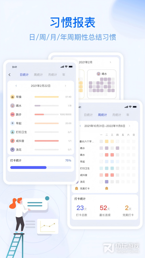 习惯:记录您要养成的习惯,在记录中生成详细的时钟,并跟踪您的每日时间记录