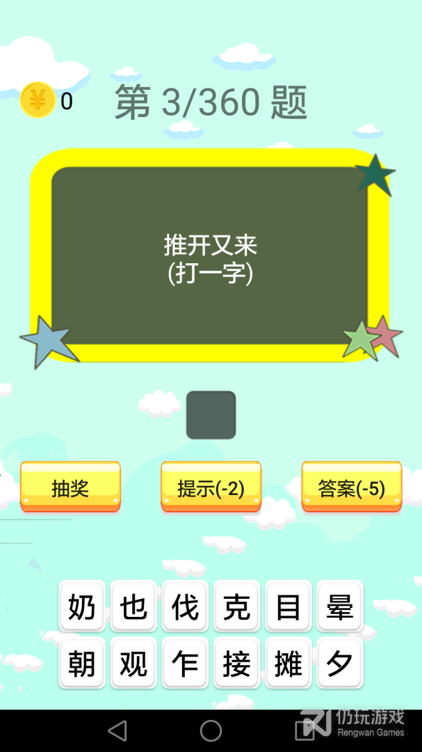 3.在猜谜界面,下方的可选字中包含答案字,依次输入即可