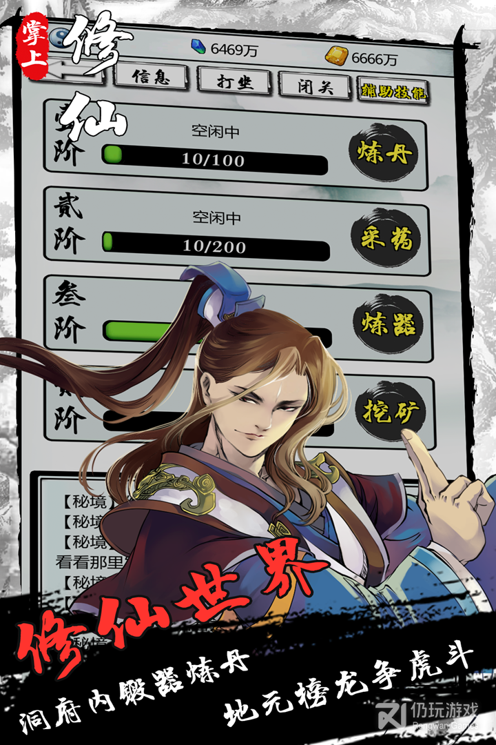 4、掌上修仙是一款好玩的仙侠风格的角色文字手游,玩家需要选择一个角色加入门派进行技能学习,你可以进行修行炼丹,获得更多资源进行升级,新颖的游戏玩法,快来下载吧