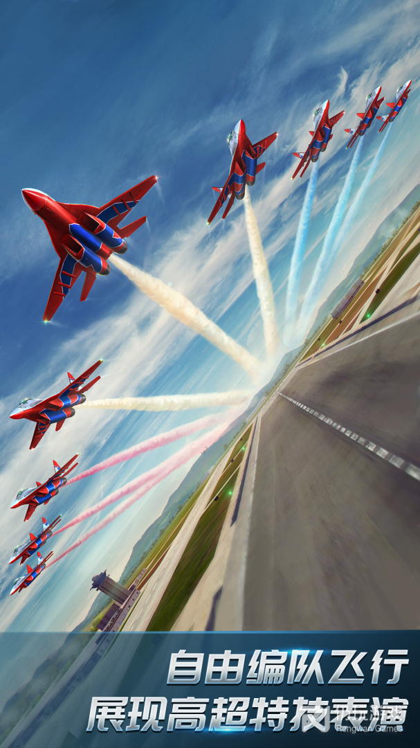 6、在音效拟真,画面精美,气势恢宏的空战3D,战队版游戏中,驾驶战机穿梭于沙漠荒原,巍峨雪山和摩天都市等诸多作战空域