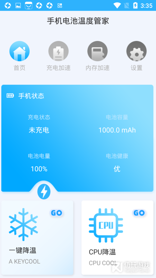 5、手机电池温度管家app是一款手机电池管理软件,用户可以通过手机电池温度管家app对电池进行各种优化管理,app中可以查看电池充电状况、降低电池温度等