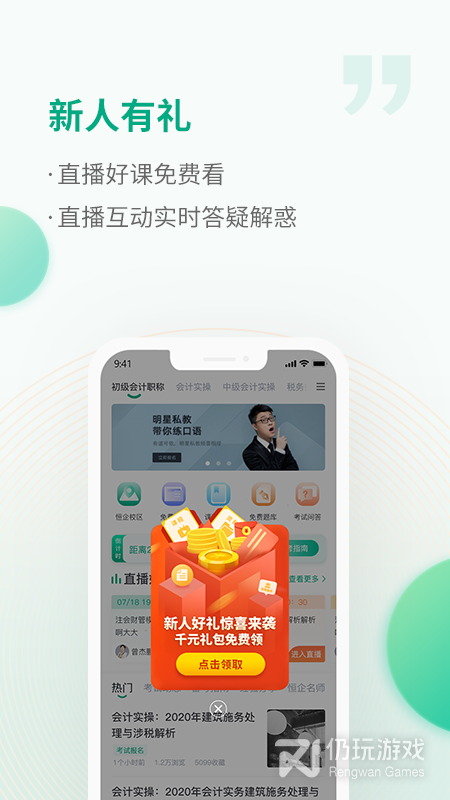 恒企网校是专为为用户提供财经领域教育的在线学习软件,软件为用户提供了海量免费直播课程,多为名师教师为大家在线授课,用户可以选择有需要的课程进行学习,碰到不会的问题可以直接提问,及时解决学习上的重点难点,帮助大家能够快速掌握考试内容,轻松学习备考。