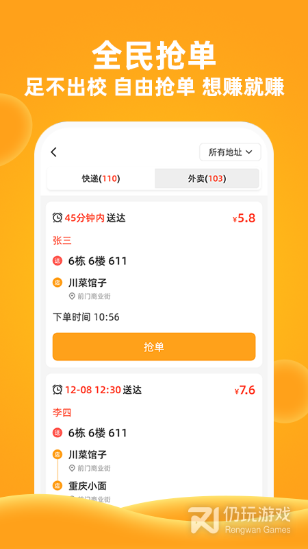 4、橙子校园是一款为用户提供校园服务的应用软件,包含校园外卖、跑腿、送货上门等,非常便捷快速高效,为大家校园生活提供诸多便捷