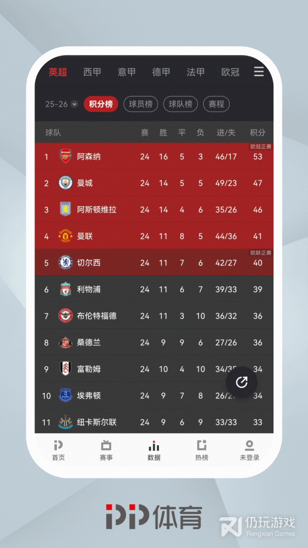 2、积分排行榜同步实时最新数据。满足全方位的体育阅读资讯需求。