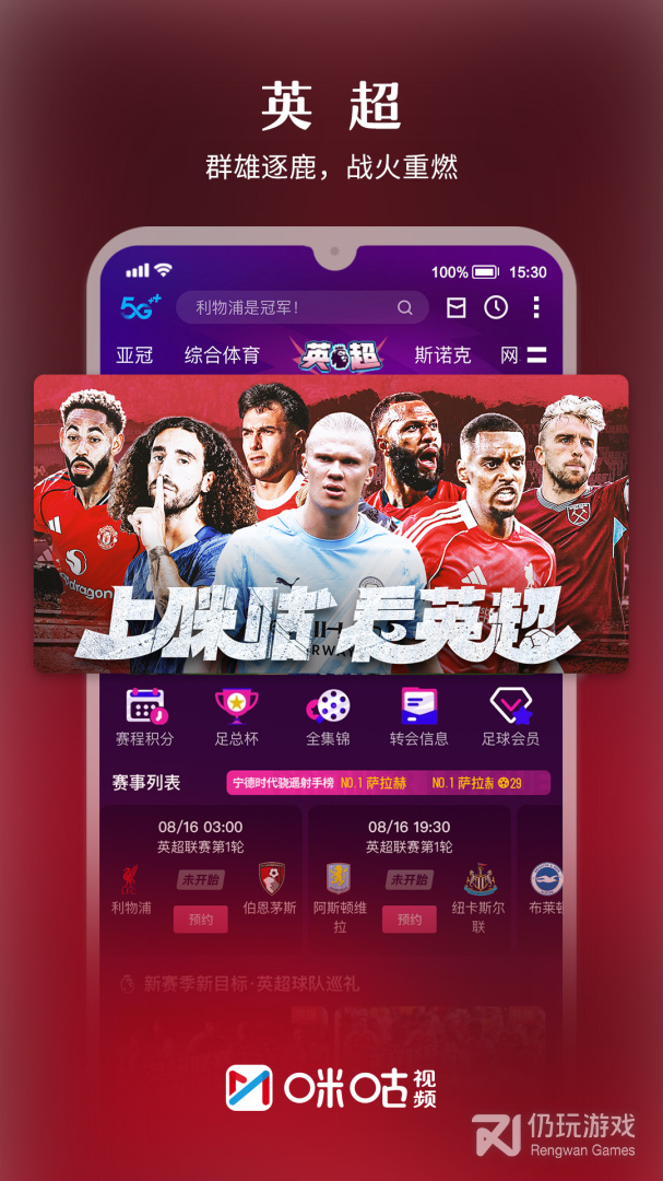英超、西甲、德甲、意甲、法甲、中网、NBA、CBA、WTT、UFC、《水龙吟》《猎豹》等众多精彩内容等你来看,海量热门赛事直播、精彩影视剧集锁定咪咕视频