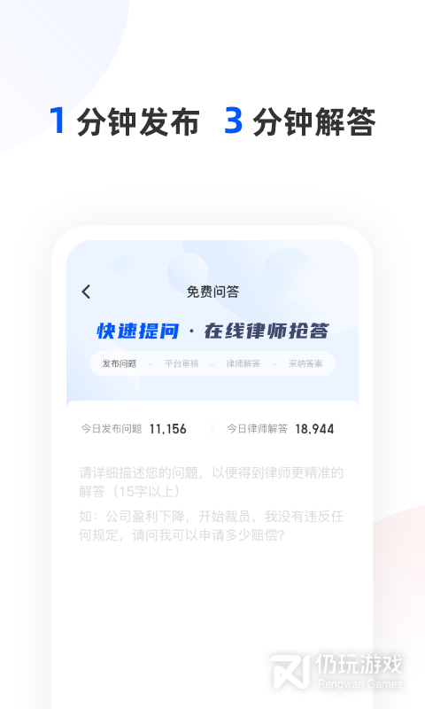 2、在线法律咨询服务,免费为用户提供文字的法律咨询服务,20万律师会员为您进行专业解答