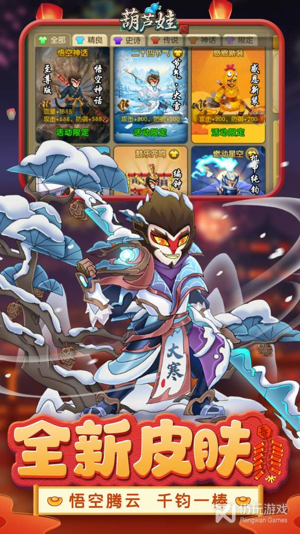 葫芦娃是一款二次元横版卡片养成类冒险手游,游戏是由经典的葫芦兄弟进行改编,再现童年的记忆,玩家需要不断培养葫芦娃,面对各种妖怪,救出自己的爷爷。