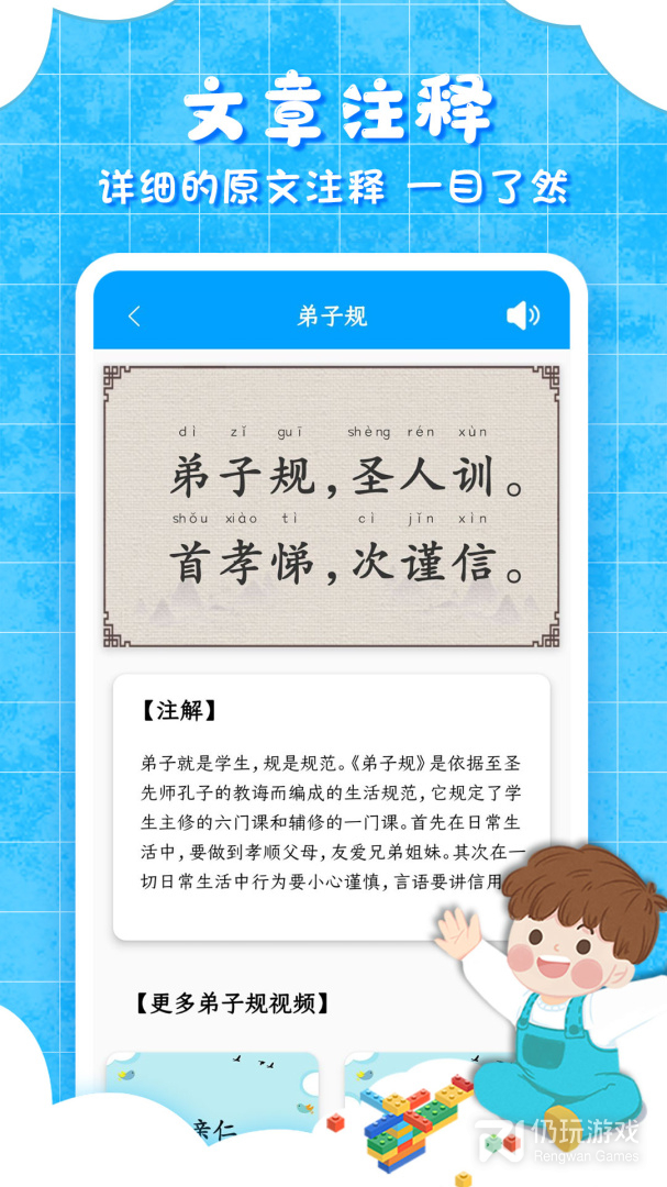 弟子规一款软件即可学习全面的经典育儿知识,千万素材随时学,不必在为宝宝的教育素材而烦恼,一个软件均搞定,快来和孩子一起学习吧。