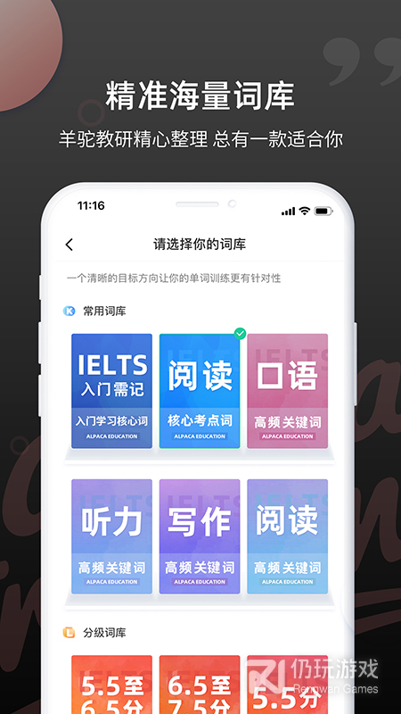 2、雅思斩单词是一款专门为雅思备考者而开发的单词学习软件,该软件为用户提供了丰富的学习词库,并且上面的单词为用户很好的进行分级分类,用户可以根据自己的能力选择合适的程度进行学习,更有多维的智能练习模式,人性化的分组复习和贴心的错词巩固机制,从而帮助用户更好的掌握相关的单词