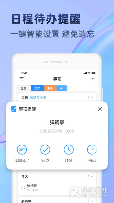 【日程提醒】自定义设置提醒时间,系统准时提醒,避免忘记重要事情。