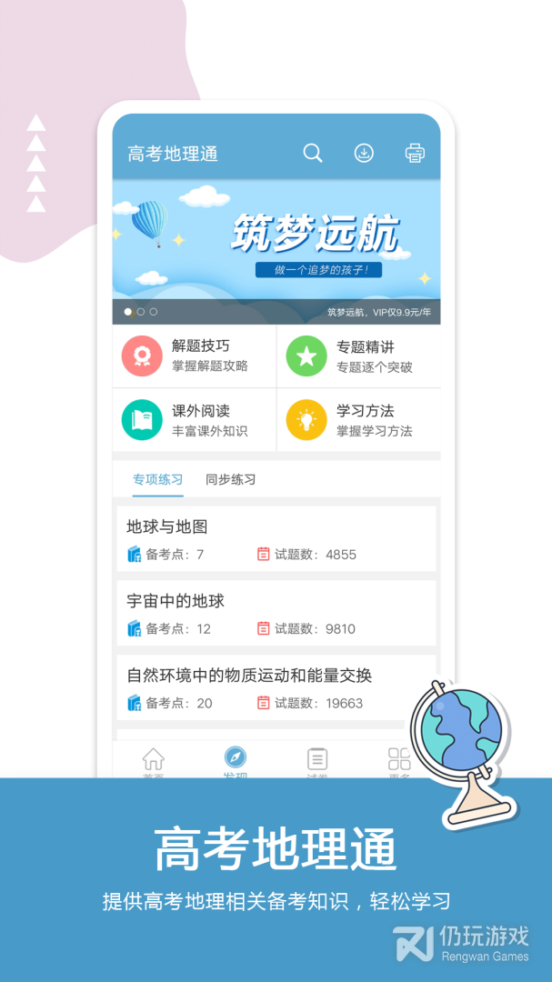 3、高考地理通是一款优质的地理学习软件,这款软件中有着丰富的高考地理知识点,重难点的解析,还有丰富的题库,包括历年的高考试题,模拟考试题等,用户可以自由的进行刷题,帮助大家快速的提高考试成绩