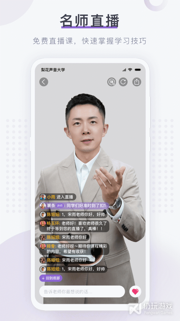 5、梨花声音研修院是一款音乐教学专业平台,梨花声音研修院实时更新专业优质的公开课程和视频录播资源,通过梨花声音研修院软件随时随地轻松在线学习提升