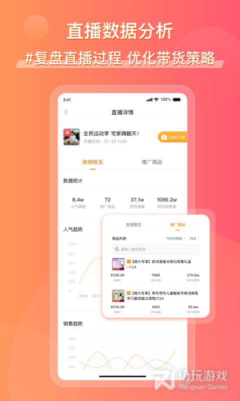 2、实时直播动态数据、跟踪直播带货效果,实现直播流量和电商变现