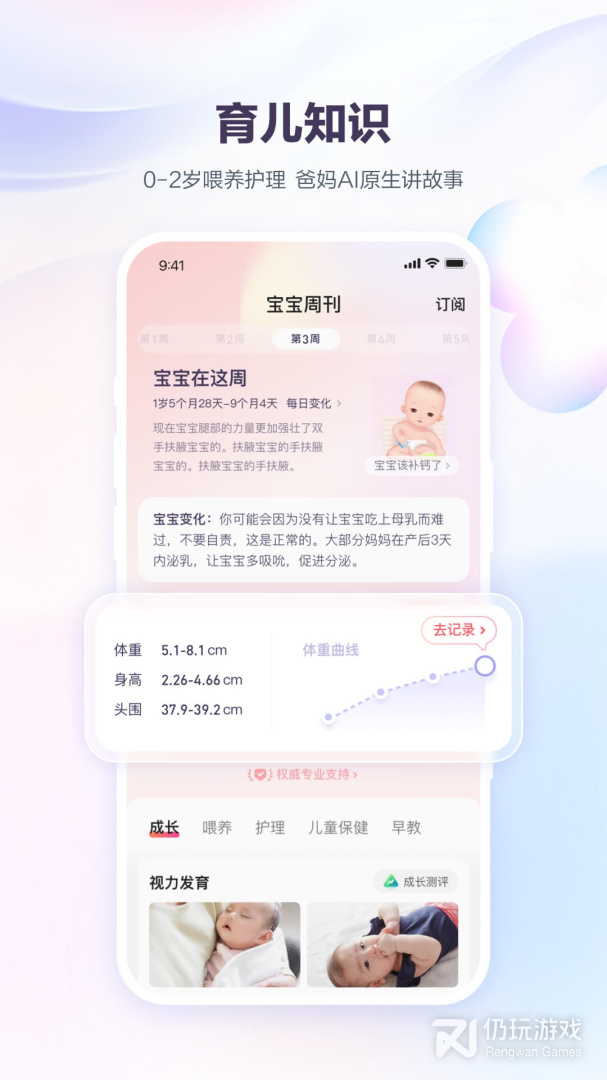 4、宝宝树是全球最具人气的中文育儿网站宝宝树,携手众多育儿专家倾力打造的,365天贴心陪伴式早教育儿应用。从宝宝出生那一刻起,“快乐育儿”将为父母们提供最专业、全面的育儿知识,喂养、护理、游戏与早教全面覆盖,呵护宝宝成长;这里有最具人气的辣妈社区,帮助父母们交流心得、组织亲子聚会,分享快乐点滴。快乐育儿,是新手父母们的必备应用