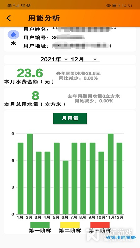 电量电费:展示了用户近3年(部分地区少于3年)的用电总量及明细