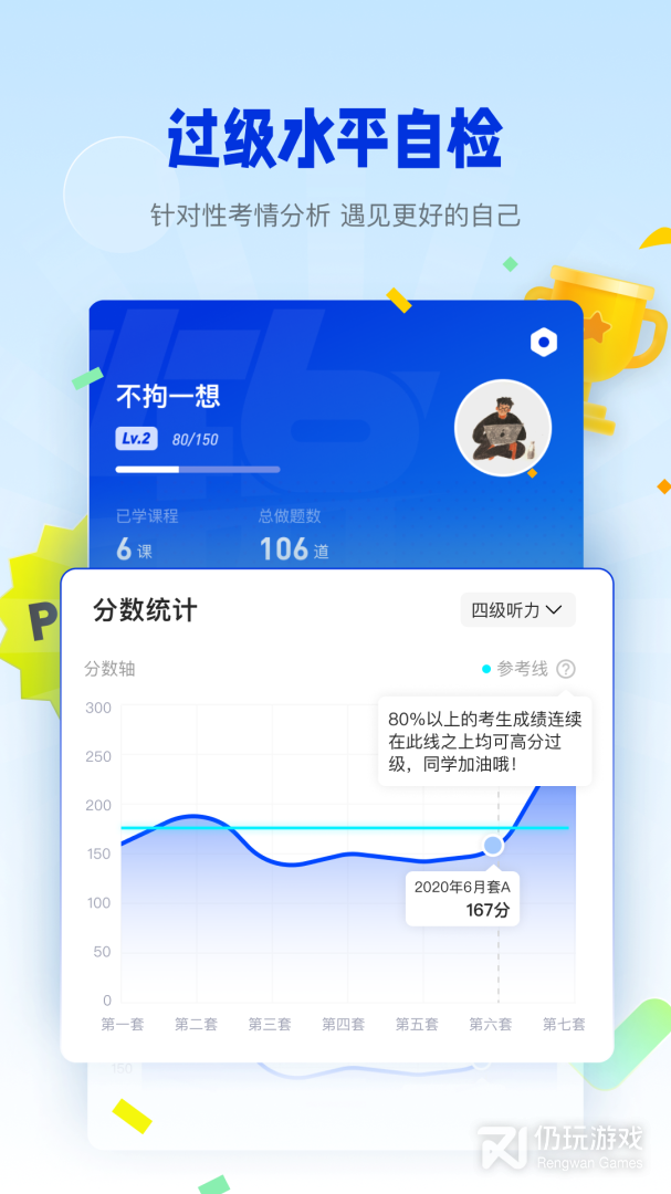 1、百词斩四六级,可以让用户一站式学习听力、阅读、翻译、写作,准备充分的迎接考试。软件配套了海量的英语题库,收录了近几年的四六级考试真题,可以让用户摸透题型,更好的应对考试