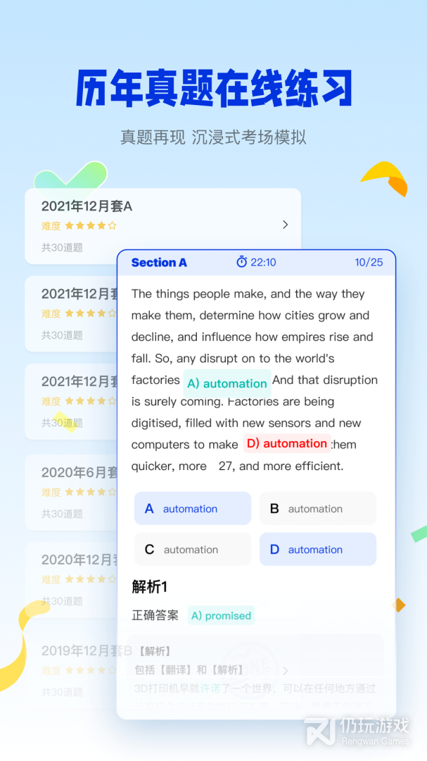 2、是有全真的模拟考试,是可以让用户沉浸式的还原考场的。