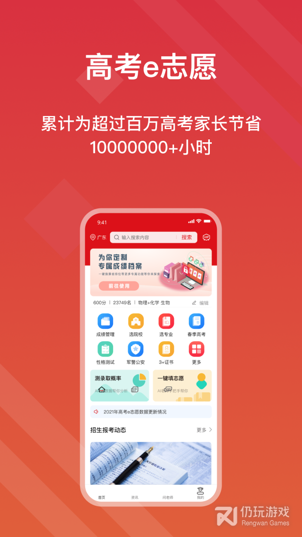 4、高考动态实时掌握 通过“资讯”版块及时传递各类高考动态信息,并通过APP将填报事项、投档动态等实时推送给用户,不错过任何机会