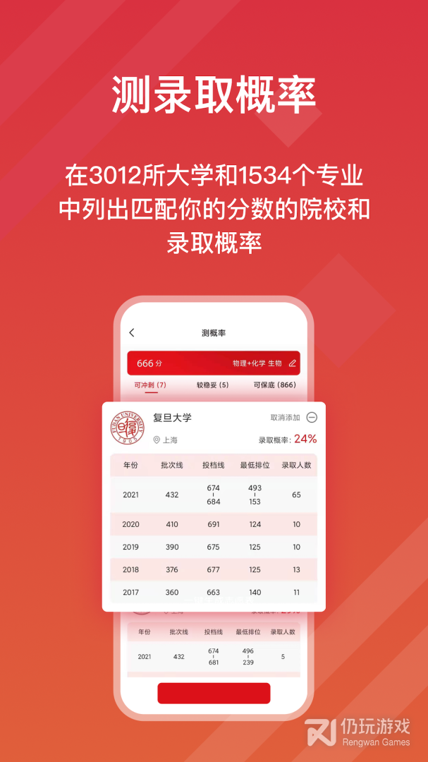 4、高考e志愿怎么样?高考e志愿是很深受大家的喜欢的,用户可以在这里的3012所的院校中轻松选择到自己想要的资料,想要了解的信息都在这里了,有了高考e志愿的帮助,用户就可以看到以自己的分数想上自己心仪的学校的概率有多少了,这样也能提前做好心理准备