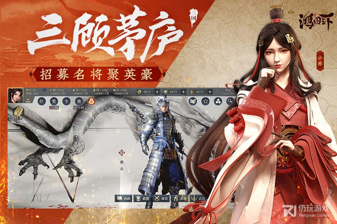 鸿图之下是一款祖龙娱乐全新打造的三国题材SLG类手机游戏,每天都有各种日常任务可以战斗,主副线剧情发展, 让你重温经典的三国世界,大量的武将等着你收集,为你出谋划策,扫荡整个战场,可以解决的敌人是非常多的,能够体验到的杀敌速度非常快捷。