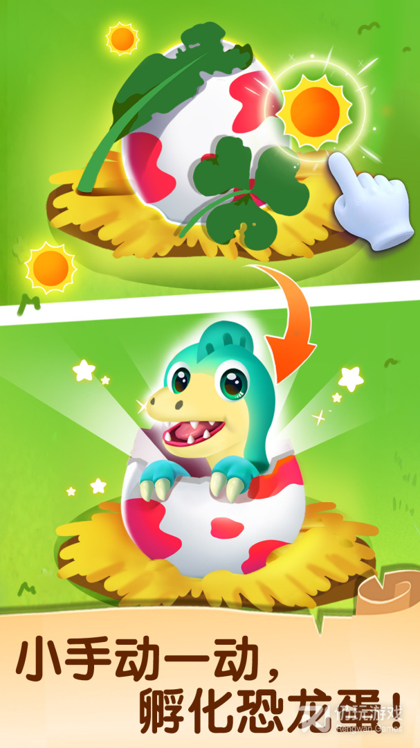 模拟孵蛋、喂养、逗乐恐龙、趣味游戏乐不停。