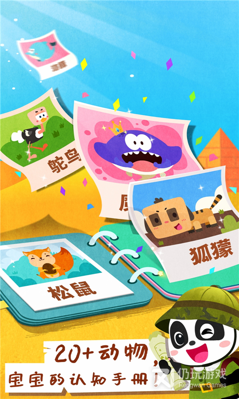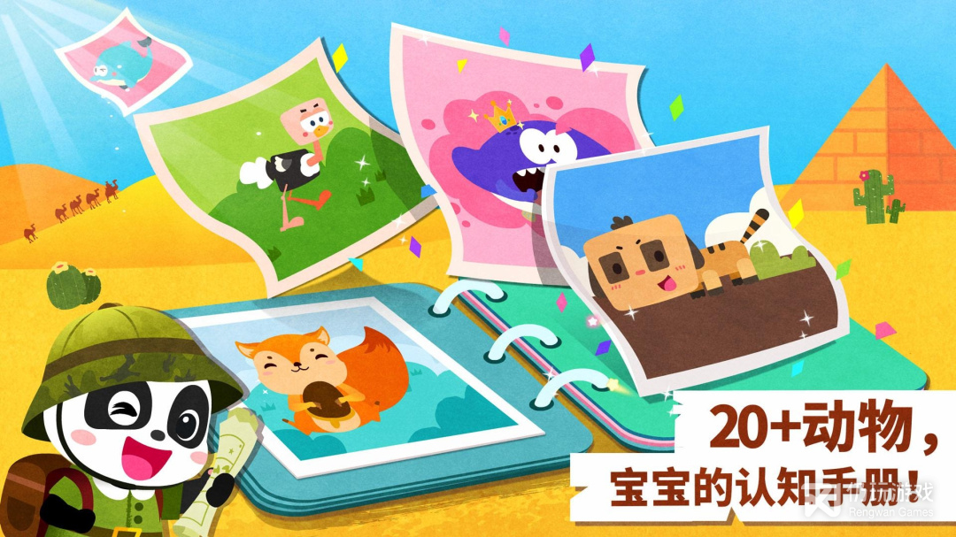 1、宝宝们在这个世界里可以看到各种场景画面,包括沙漠、森林、海洋等等,认识更多新奇又可爱的小动物,在学习知识的过程中丰富自己的眼界。各种你从没见过的骆驼、鸵鸟、老虎、孔雀等动物在这里都可以看到哦