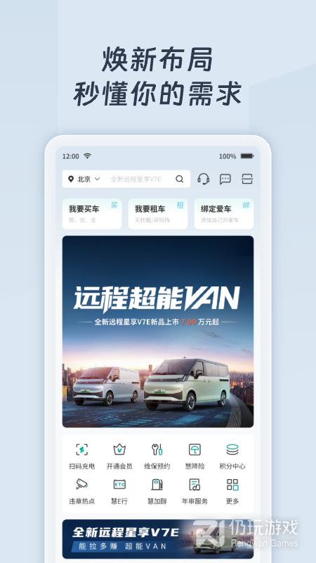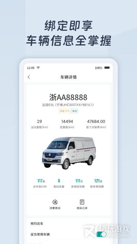 2、绿色慧联作为一款汽车服务软件,提供扫码充电、违章查询、车辆监控、查看附近充电桩等功能,让用户可以实时掌握车辆的相关信息;同时还有慧联租车功能,全程进行贴心服务,可以直观的了解到租车的价格和提醒你还车时间,让你放心用车;并且提供汽车保养服务,高效提高车辆使用年限,让你享受到最优质的服务