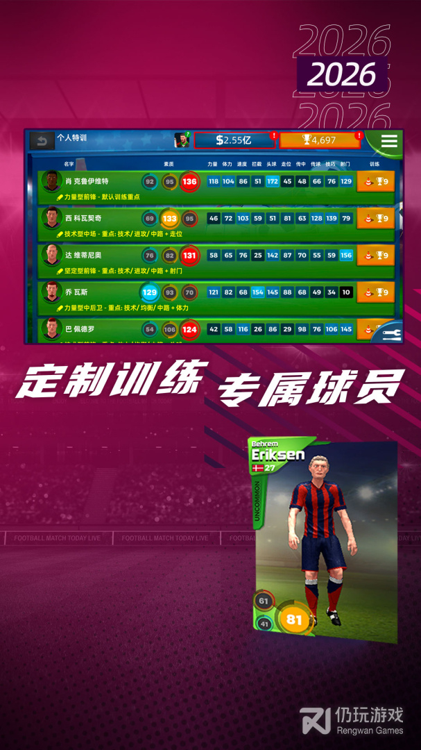 这是一款画面精致的足球经理类模拟经营手游,游戏加入了众多的国家和俱乐部,加入了数十万的真实球员数据,玩家可以选择自己喜欢的国家和俱乐部去进行冒险,你将经营自己的俱乐部,可以利用各种资源强化球员的属性,可以参加各种比赛等