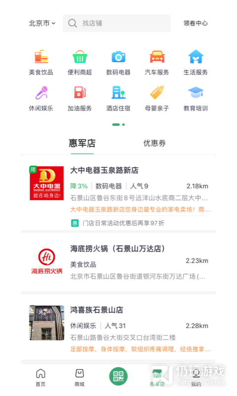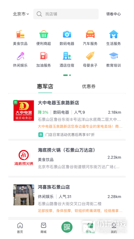 7、在这里,用户可以找到各种类型的店铺信息,包括超市、食品、休闲娱乐等