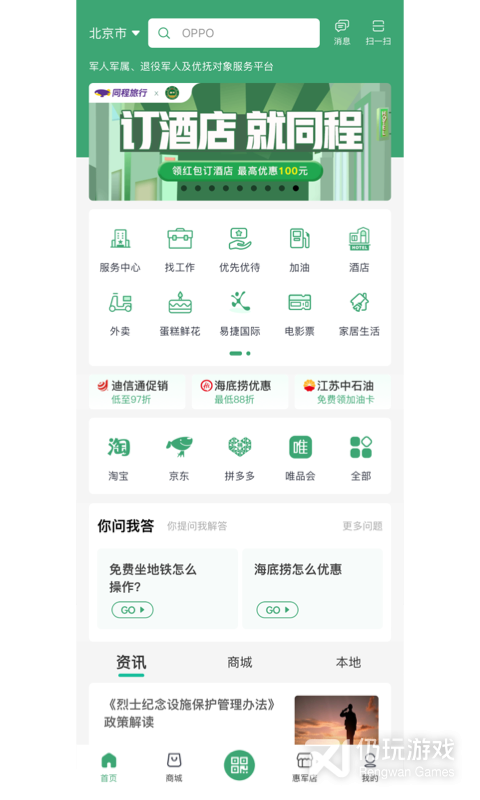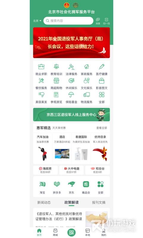 1、软件是主要来对退休的军人来提供服务的。同时也是为军人的家属来提供各种优惠购物,对于各种生活方面的服务都是可享受到军人优惠的,优惠的价格,是能让用户真实的体验到军人的荣誉感,坚持良好的信念感,进行更好的服务