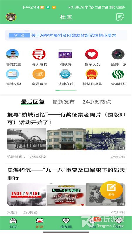 5、论坛,榆友圈,发现等等诸多功能内容,可以帮助用户更好的体验智能生活带来的便利