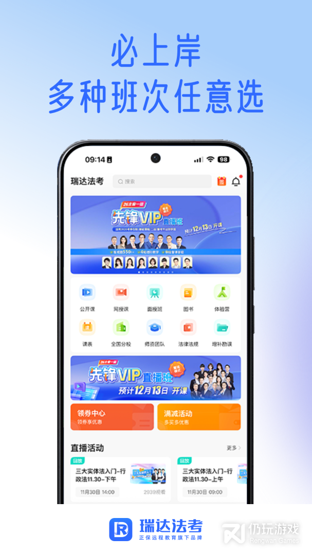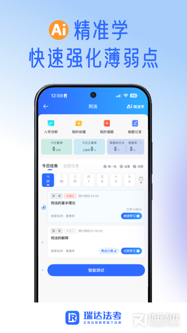 1、瑞达法考为用户提供了专业优质的法律学习平台,平台中汇聚众多权威老师,实时在线提供视频直播,随时随地在线免费学习专业的法律课程,丰富的题库让学习无障碍,欢迎各位同学下载使用