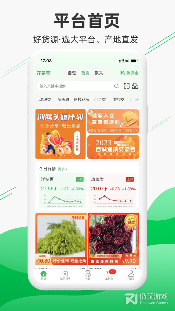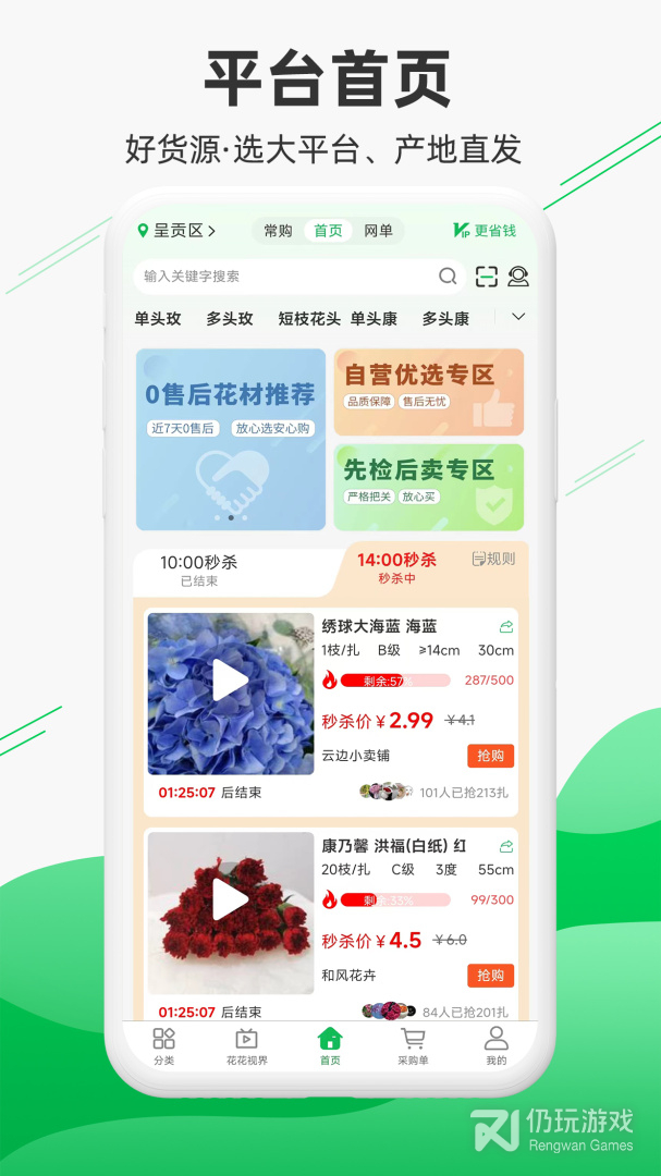 3、平台拥有丰富的花材资源,品类齐全,一站式采购,花农只供,送货上门