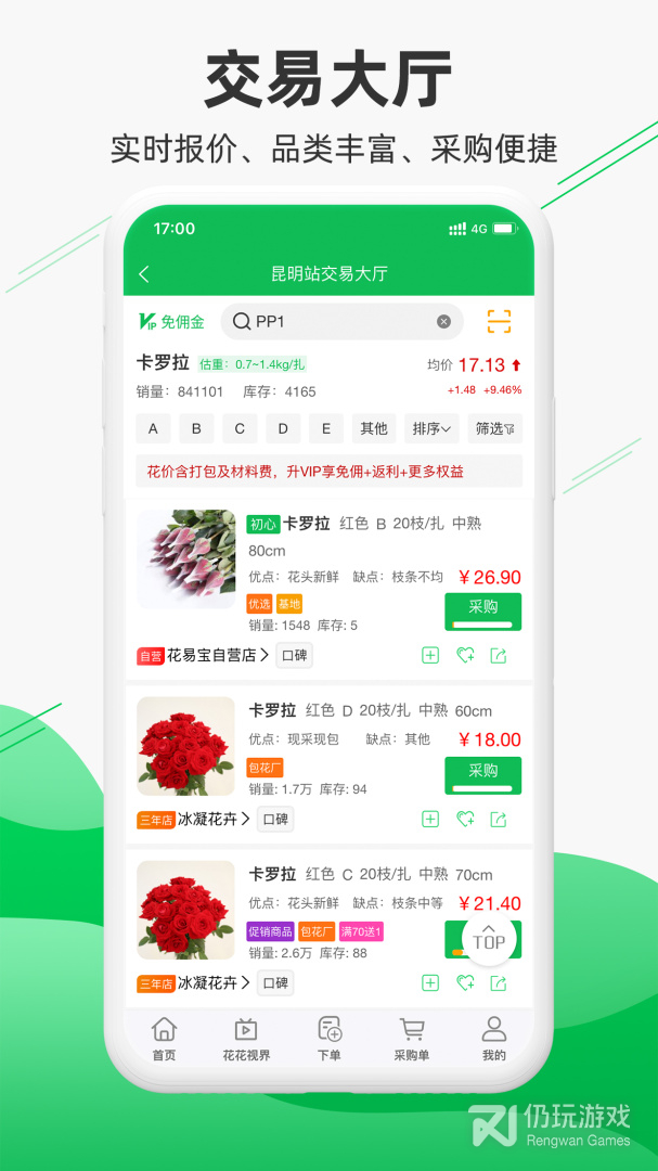 1、通过花易宝可以随时随地在线与基地花农进行交易,轻松购买各品类鲜花