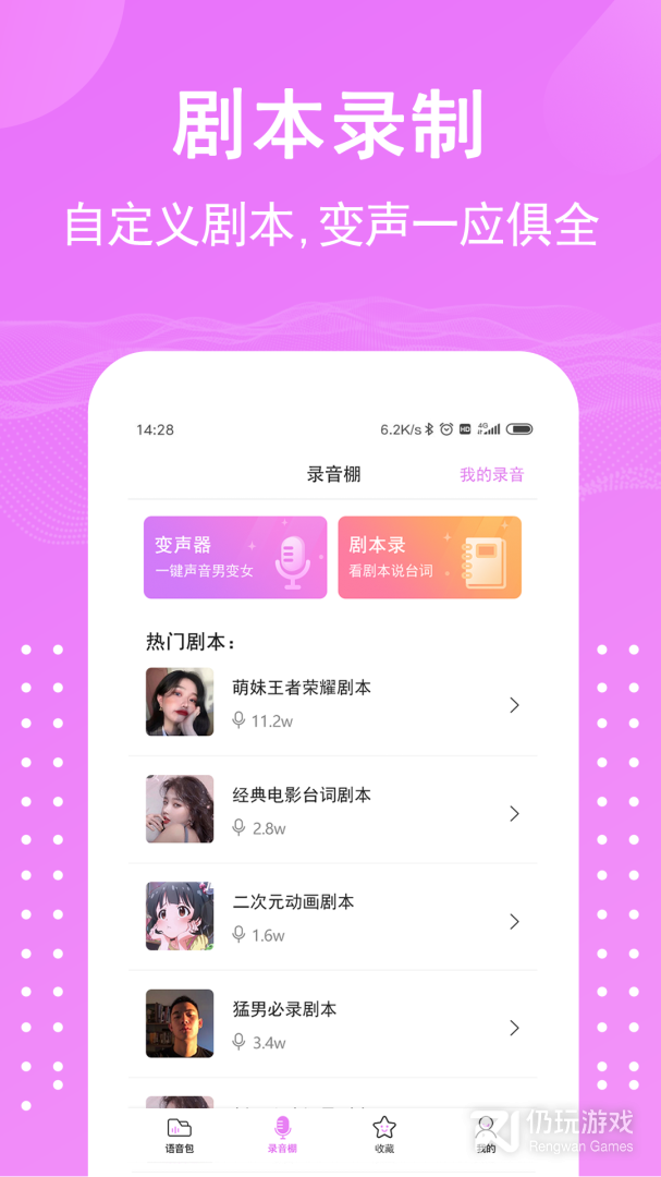 手机变声器丰富的语音包有:吃鸡语音包、王者语音包、李云龙语音包、小哥哥语音、小姐姐语音等
