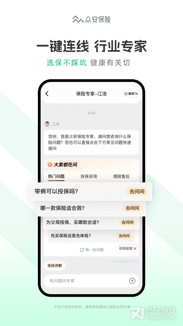 众安保险是一款集保险和理财的手机软件,首家互联网保险公司,能够投保和做金融理财服务,很方便,一站式保险理财,让您的家人出行无忧,让您的财富节节高升