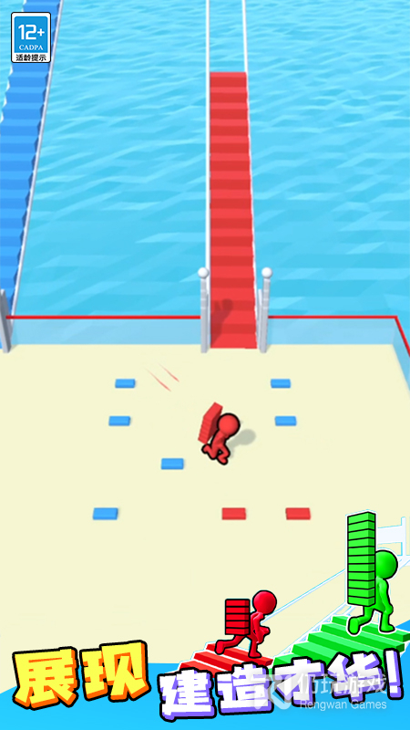 3、搬砖搭桥通往决胜舞台,还有哦!游戏里可以通过,比赛得来的金币升级砖头