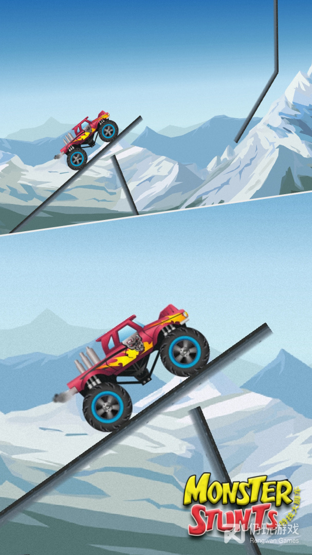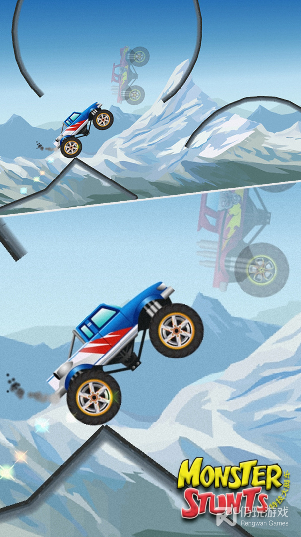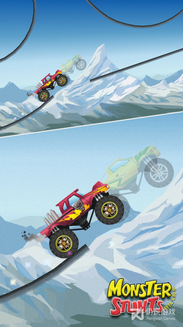 2、游戏需要你去完成各种赛车特技动作,巨大轮胎带给你无与伦比的安全感