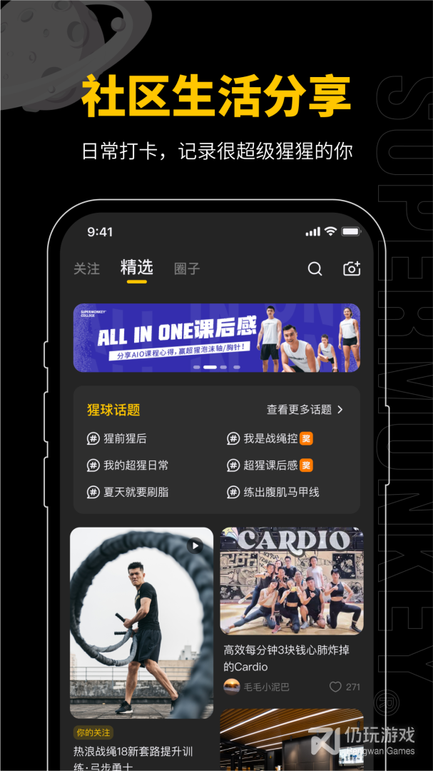1.SUPERMONKEY超级猩猩健身,官方App——为运动爱好者打造的线上运动社区。