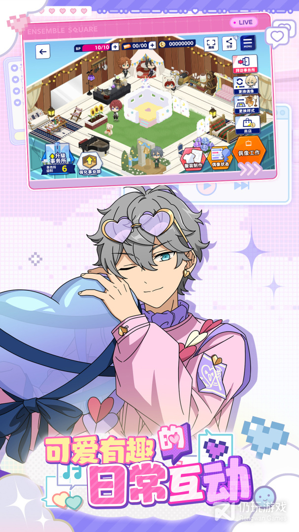 玩家可以在偶像事务所里布置各种各样的家具,创造专属的偶像家园,不仅有丰富的主题套装供玩家装饰,还能解锁超多超可爱的偶像特殊家具配套行为!海滩刨冰摊吃美味刨冰,温馨卧室带着毛茸茸眼罩打呼...精致的动作细节仿佛置身偶像生活之中,让人欲罢不能!