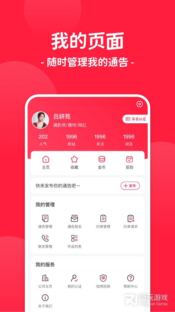 通告管家APP是一个模特、演员、艺人、红人等接单服务平台。一个汇聚海量模特、主播、演员、摄影师、经纪人、商家等影视、视觉行业人脉资源的平台。