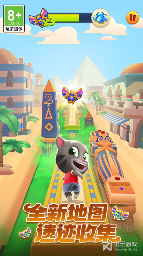 3、汤姆猫跑酷应用宝版游戏里不仅延续了最新原作中经典刺激酷炫上瘾的卡通汤姆猫狂奔收集金币玩法,还延续了最新原作中精致唯美3D立体写实的游戏动画背景,当然最令人开心的是玩家在汤姆猫跑酷应用宝版游戏中不在需要累积金币来解锁金币来升级猫咪和购买道具